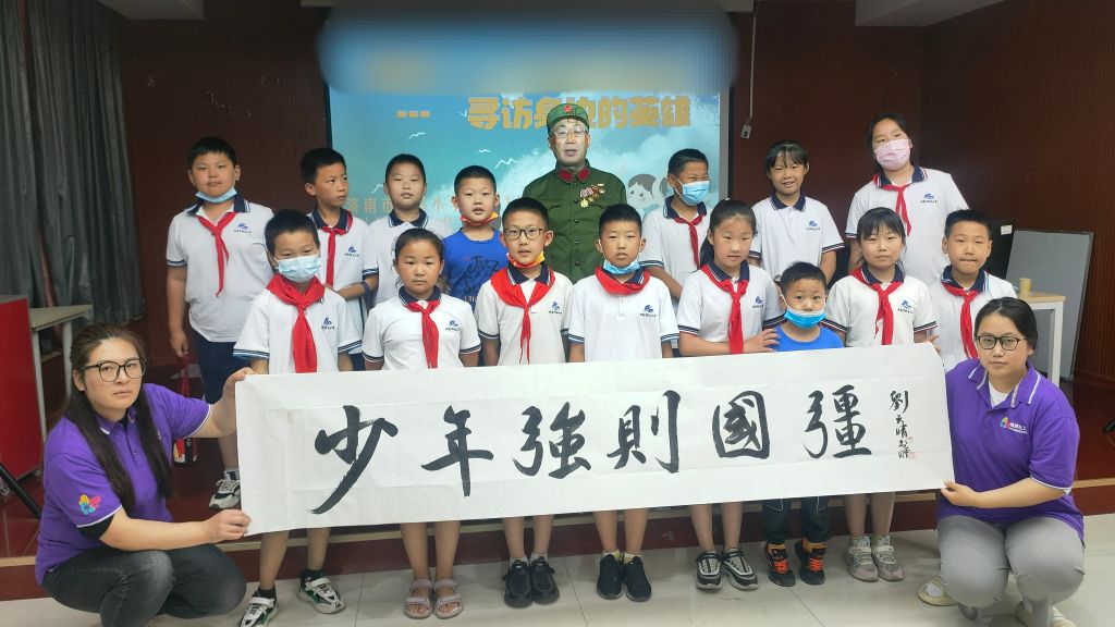 看,这是“明天的期许”。“爷爷,我以后会好好学习,您今天讲的每一句话我都记住了!”孩子们围绕在刘天晴老师的身边,询问着故事的细节,注视着荣誉的军章,一时间稚嫩的声音填满了活动现场。