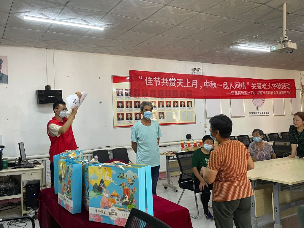 秋风送爽,丹桂飘香。值此中秋佳节来临之际,为充分发掘传统节日内涵,弘扬祖国的优秀文化,9月8日下午,高新区社工总站联合巨野河街道社工站、济南市东润社会工作服务中心在高新区巨野河街道东郑日间照料中心开展“佳节共赏天上月,中秋一品人间情”关爱老人中秋活动。