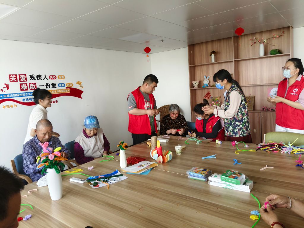 在第34个全国助残日来临之际,为弘扬社会主义核心价值观,倡导扶残助残美德,积极营造全社会关心、关注、关爱残疾人的浓厚氛围。5.17日,遥墙街道社工站联合遥墙街道残联、老兵志愿服务队在遥墙街道综合养老服务中心开展“指尖生花、快乐DIY”扭扭花手工制作活动。
