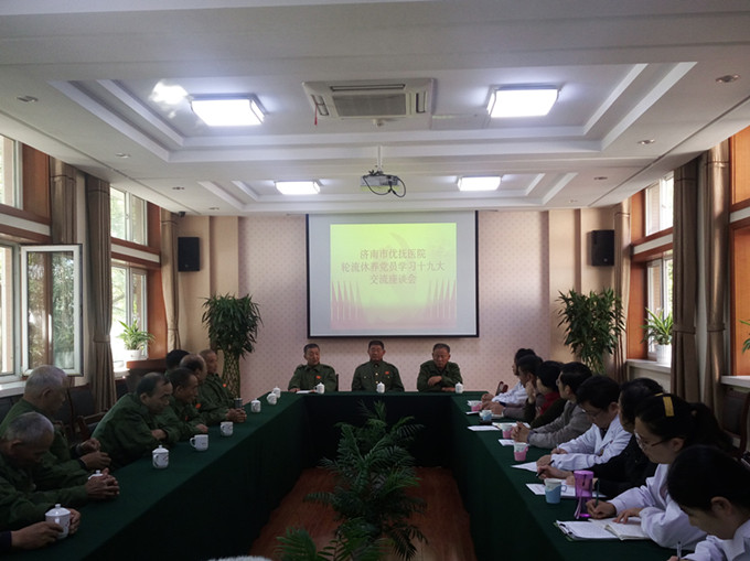 10月24日上午,济南市优抚医院第六批长清区荣军休养的党员在院休养中心二楼多功能厅,畅谈交流学习十九大报告精神感触和体会,医院领导及休养中心党员参加了学习座谈活动。