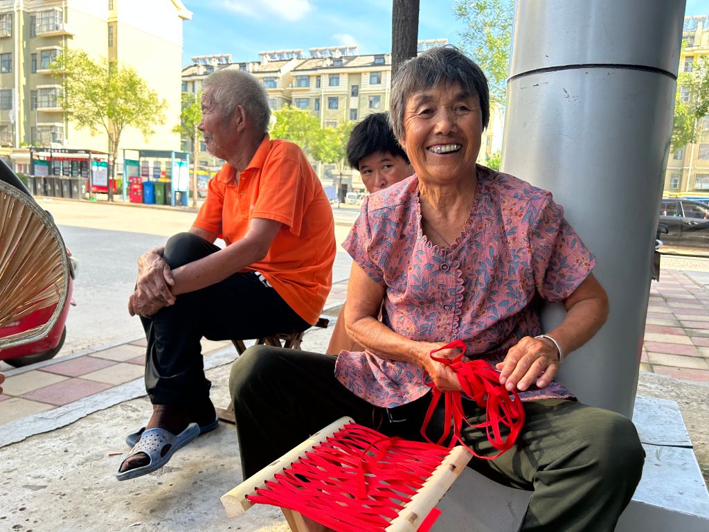 马扎俗称“杌扎、撑板凳、杌扎”,据悉早至汉朝以“胡床”称。2600年前发源于齐国故都,是一种小型的坐具,腿交叉,上面绷帆布或麻绳等,可以合拢,便于携带。可以说,马扎几乎是所有老年人喜欢的坐具,也有很多老年人甚至年轻人擅长穿马扎。因此,穿马扎活动一开始,在场的老年人就都一副跃跃欲试的样子,想要大展身手,甚至颇为骄傲地说:“我穿马扎的手艺都有好几十年啦,以前家里的马扎都是我自己做的,就是现在很久没穿过啦,手艺才有些生疏。”