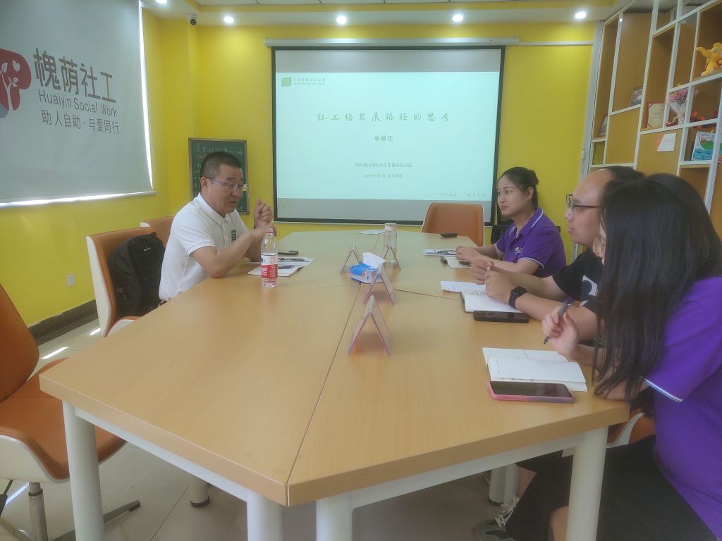 为持续提升驻站社工的专业知识储备及实务工作能力,美里湖街道社会工作服务站邀请成都市清醒人生社会工作服务中心理事长袁献远,赴美里湖街道社会工作服务站作“社工站发展路径的思考”的督导培训。