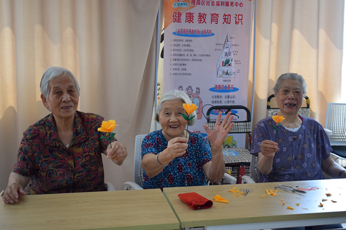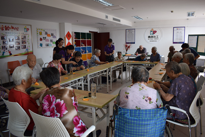 根据住养老人日常生活程序化,社会交往固定化的特点。项目组每周二上午9点开展手工小组活动,形成固定时间模式。7月2日上午在福利中心三楼老年大学如期开展“悦学习之手工课堂”小组活动。