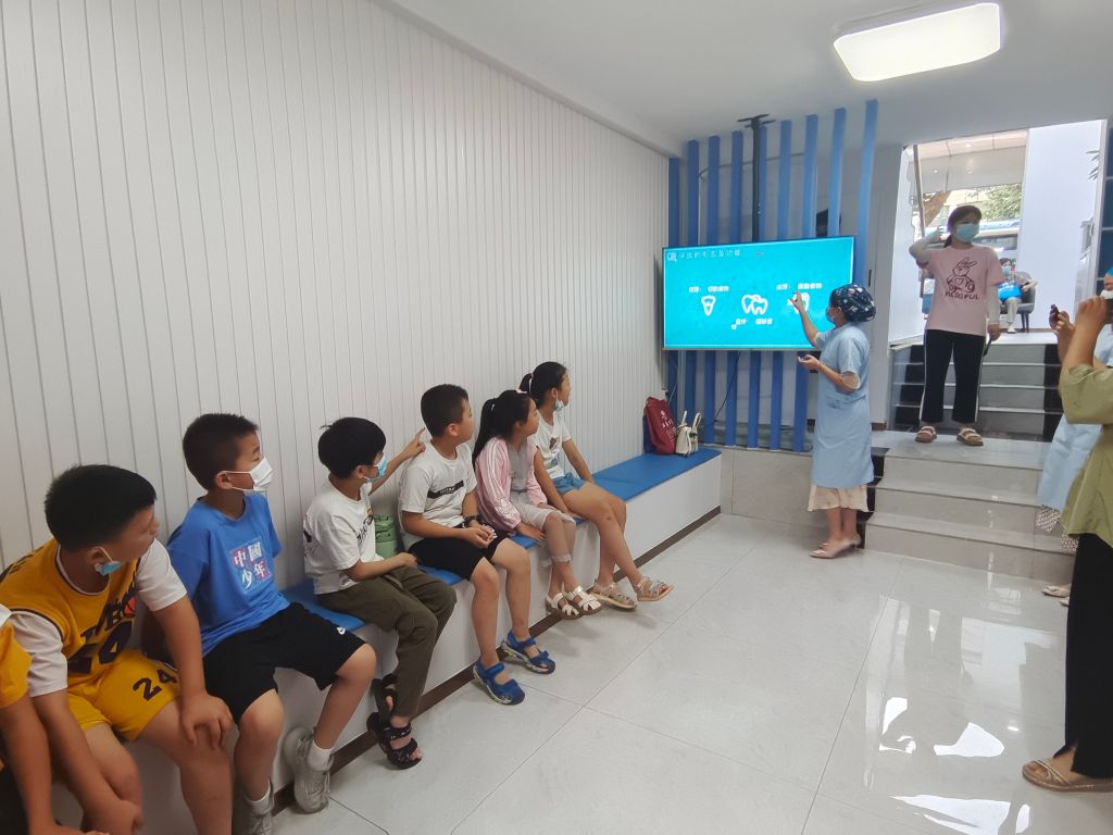 为了更好的服务辖区内暑期公益课堂的儿童,为孩子提供更有利的条件,关爱儿童的牙齿健康,7月19日,文昌社工站链接永固牙科,为社区儿童进行口腔知识讲解及口腔健康检查。