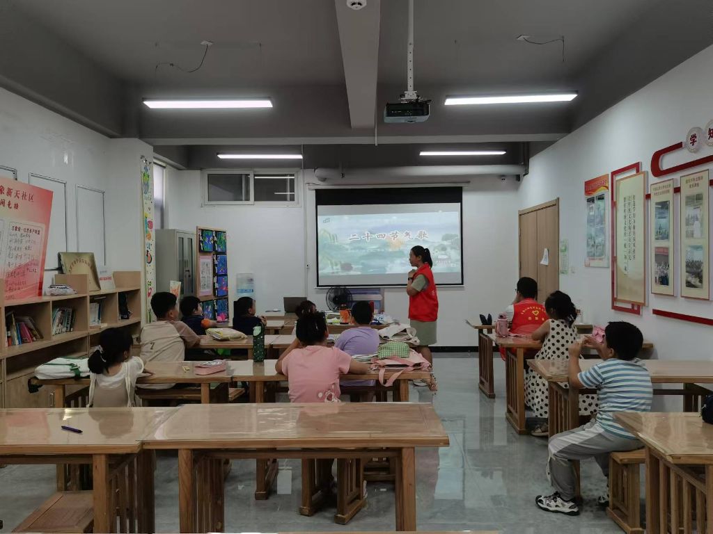 为了引导儿童深入了解中华传统文化的精髓,增强他们对自然变化的感知能力,8月20日,王舍人街道社工站联合万象新天社区开展“中华二十四节气之美”——童享柳下传统文化学习小组最后一节的活动,此次活动不仅为孩子们带来了丰富的节气知识,还进一步弘扬了中华优秀传统文化。