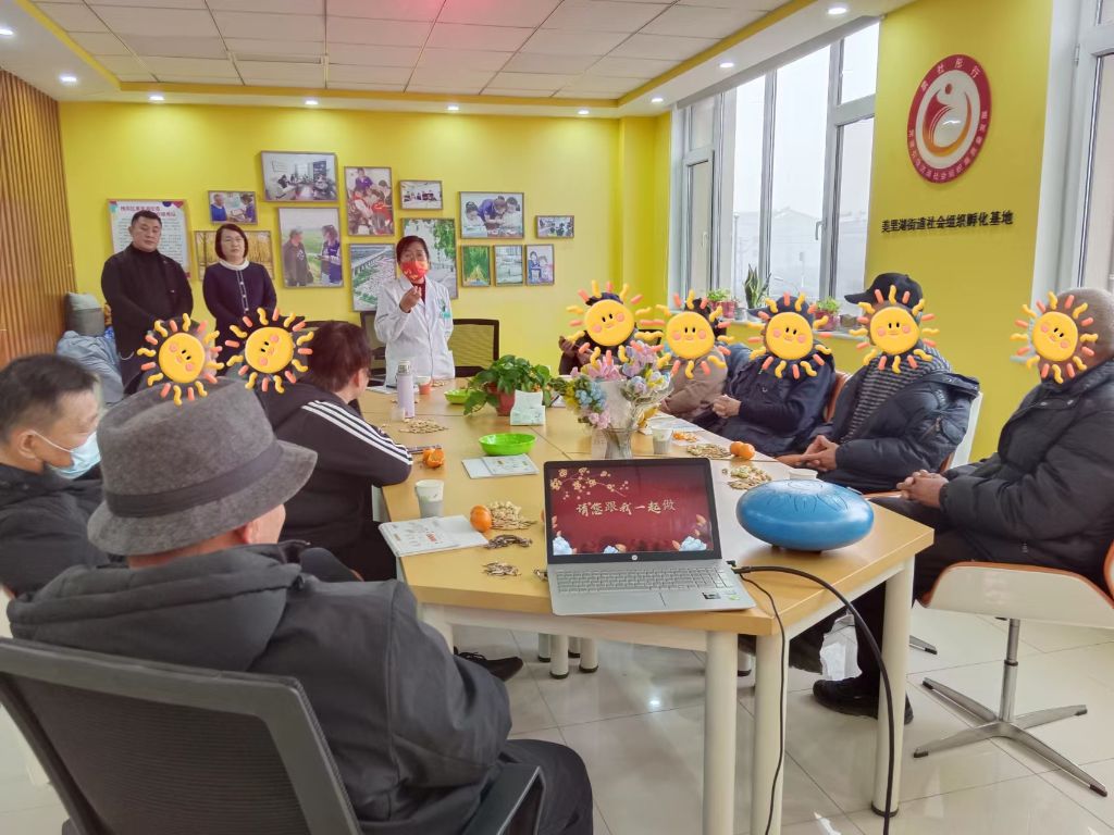 活动在计生协会米主任的元旦致辞中拉开序幕,米主任对各位来宾表达了亲切地问候和祝福。为缓解大家的陌生感,活跃现场氛围,社工带领大家跳起了手语舞。在欢快的手语舞的感染下,失独老人们渐渐放松下来,脸上露出开心的笑容。随后,社工借助乐器无忧鼓,展开音乐疗愈,现场教授了一个简单的曲子,并鼓励大家上台尝试,让失独老人们在空灵的音声中缓解精神压力。此外,社工还带领失独老人进行了猜灯谜环节,老人们积极举手回答,现场氛围十分融洽。