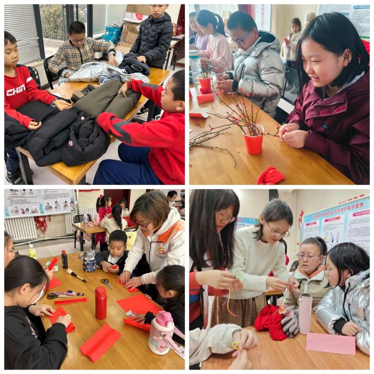 在手工环节中,社工结合视频,现场教授创意手工制作、叠羽绒服、立体剪纸、编绳等内容,孩子们通过互动学习、互相交流与合作的方式,不仅激发了儿童的创新思维能力,动手能力、组员合作能力,还丰富了孩子们的寒假生活。
