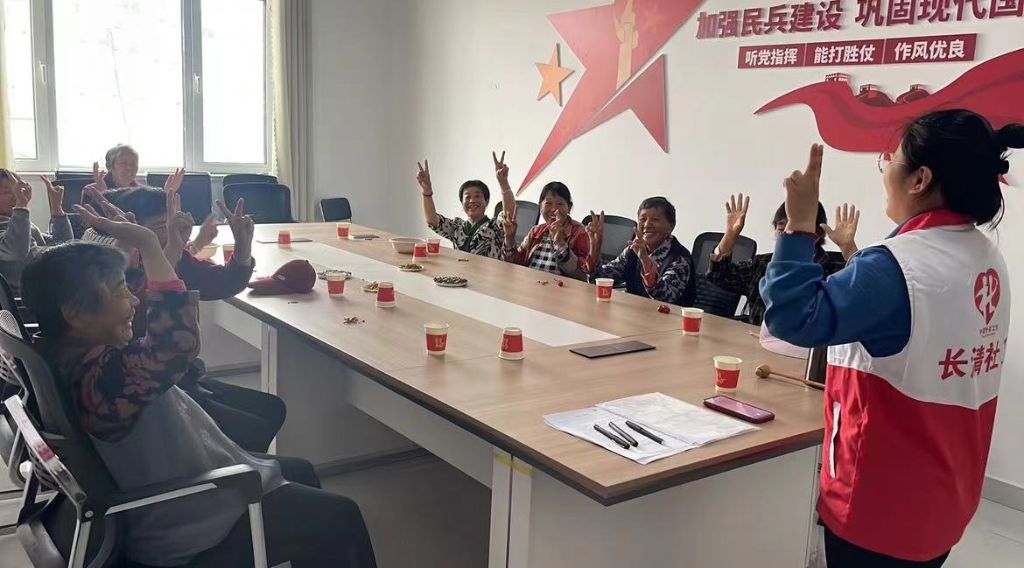 本节小组,以调节情绪和放松身体为主题,通过“拉家常”式的聊天方式,结合健身操,慢慢贴近老年群众的心理,指导他们通过休闲娱乐、运动健身、主动倾诉等多种方式舒缓身心压力。此外,活动还安排了“抢凳子”等趣味游戏环节,小组成员情绪高涨,活动现场欢声笑语,不仅为活动增添了热闹的气氛,而且还帮助小组成员舒缓了身心压力,掌握了舒缓压力的正确方法。活动结束后,老人们脸上都挂着由心而生的笑容。
