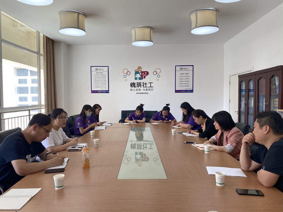 5.26日上午,槐荫区民政局基层建设科科长段莹携道德街街道办事处副主任刘杰、社会事务科科长刘健赴新映象项目组,就新周期项目组工作展开实地指导,新世界阳光花园居委会书记刘悦华、济南市历下区山泉社会工作服务社助理总干事马庆文、新映象项目组全体组员出席本次会议。
