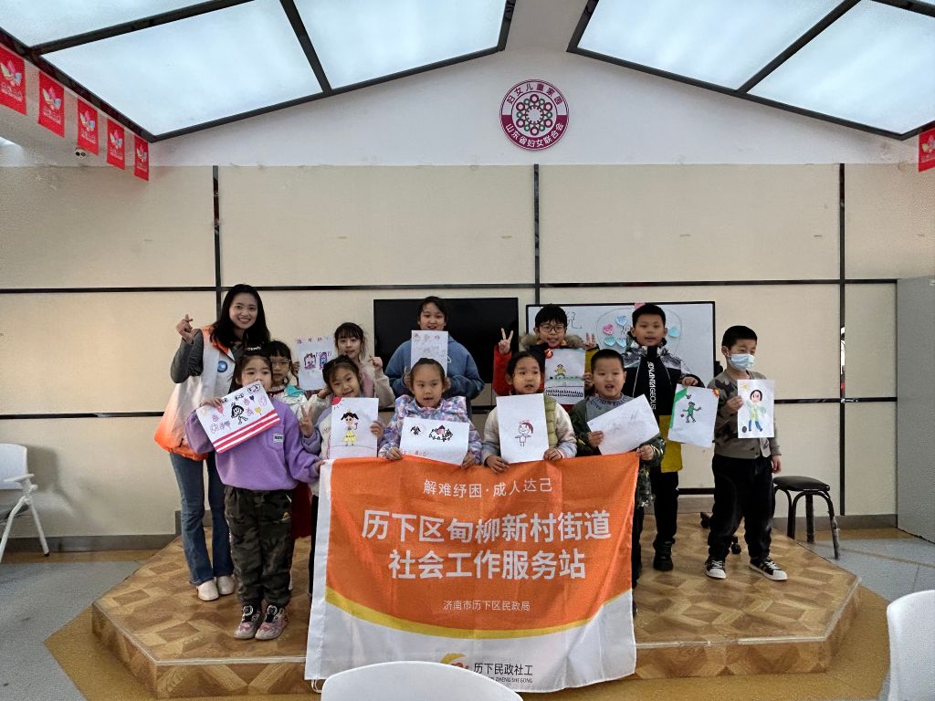 为了增进儿童对自身的认识,培养儿童兴趣,更好的发展儿童潜能,促进儿童健康成长。2024年1月29日下午,甸柳新村街道社工站在第三社区居委会开展第一节“向阳花开,自信未来—儿童自我认知与成长”小组活动,活动内容包括6部分,分别为:嗨,你好、谁是小组长、小组规范树、问卷前测、自画像、总结分享。社工站站长倪汝露主持此次小组活动,实习生王优华协助,11名小朋友参加。