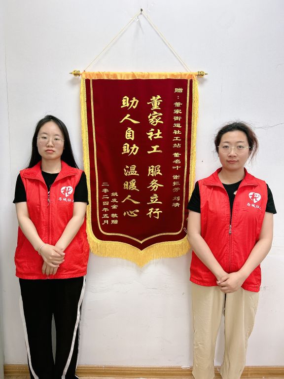 董家街道社工站社工服务暖人心,服务对象真诚感谢送锦旗