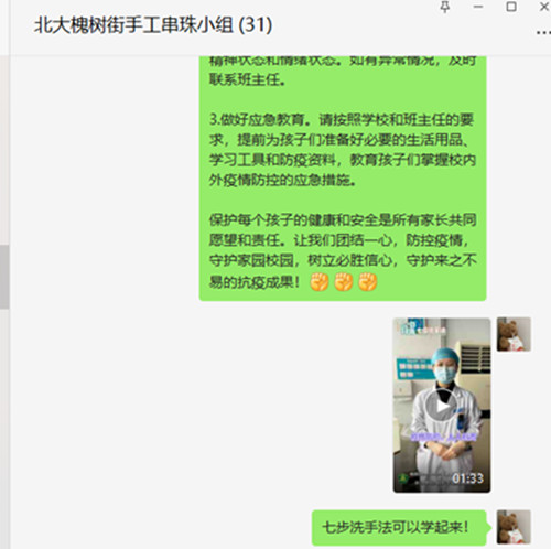 “我怎么收不到验证码呀!”、“课程不小心退出了怎么办?”“手机怎么横屏播放啊!”接到求助信息,社工立即化身云课堂小助手,一对一解答来电老人的疑问,并将操作流程重点标注,截图发到老年人的手机中。在社工的帮助下,孩子们迅速切换心情,进入到了学习状态。除此之外,社工链接山东省手足外科医院的医生,录制《七步洗手法》视频发布至微信群,叮嘱服务对象养成良好的卫生习惯,升级个人防护金盾牌!