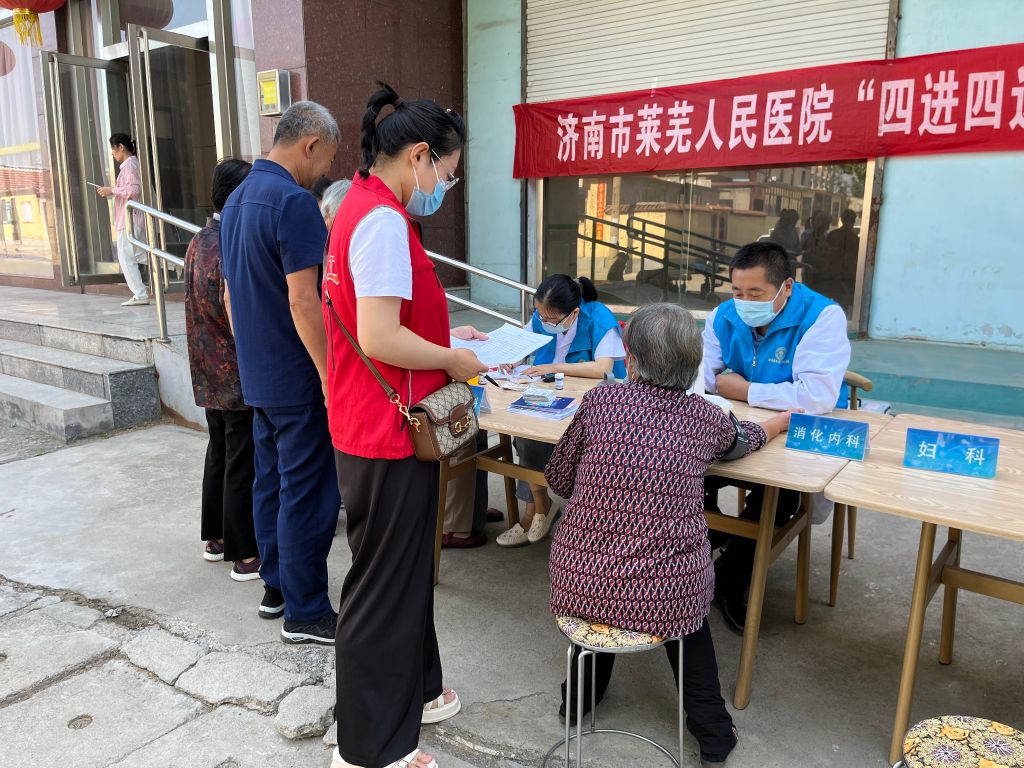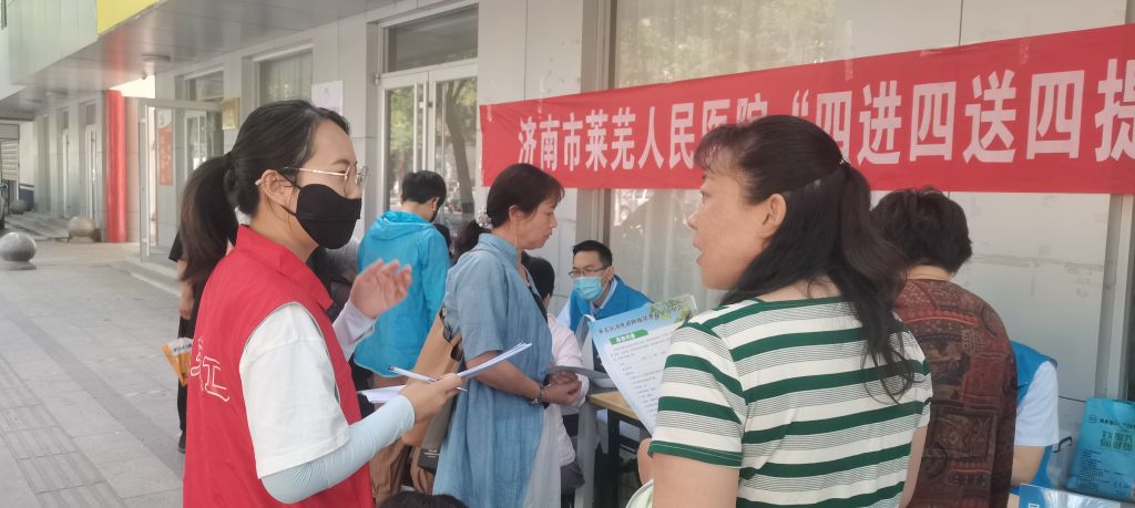 2023年6月8日,凤城街道社工站联合凤城街道城西管区、济南市莱芜人民医院在小曹村社区党群服务中心为社区居民进行“四进四送四提升”健康促进义诊活动。
