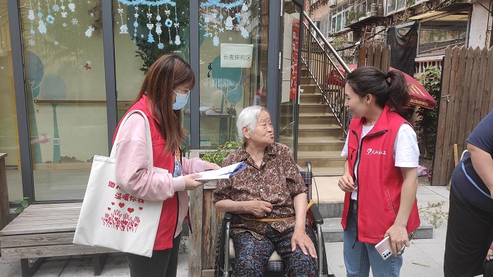 (制锦市街道社工给老人做需求调研)