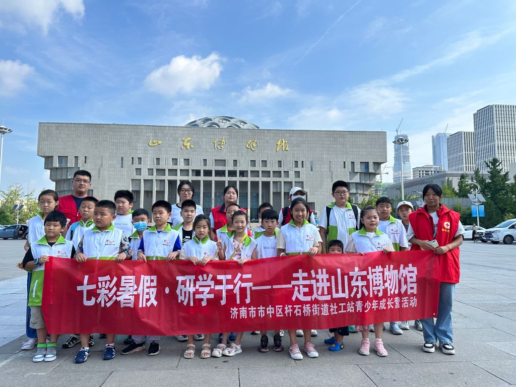 近日,杆石桥街道社工站与启明里社区共同举办了一场主题为“七彩暑假 研学于行”的研学活动,为社区的孩子们带来了一次难忘的历史文化之旅。活动中,孩子们走进了山东博物馆,在社工和志愿者的精心组织下,在博物馆讲解员的耐心讲解下,开启了一段充满趣味和知识的探索之旅。