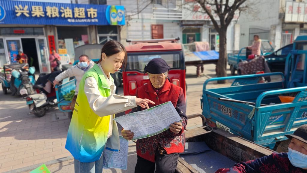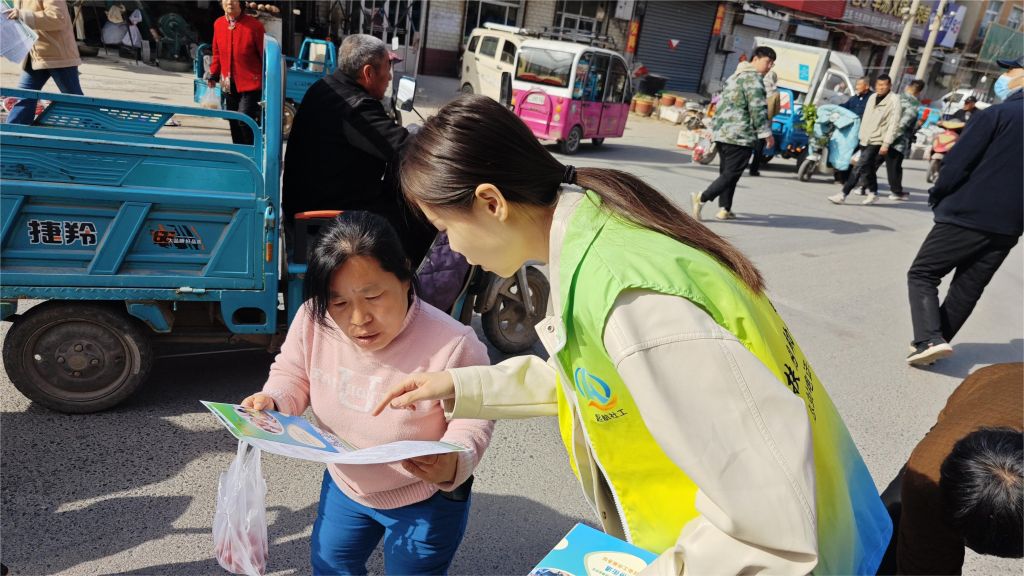 除此之外,社工也利用辖区集市平台,走入集市为来往居民派发社会救助政策与社工站服务宣传单页,为其进行救助政策宣传与解读服务的同时,也增进辖区居民对社工站服务的了解与认同,为后续社工站慈善市集服务做好前期宣传工作。