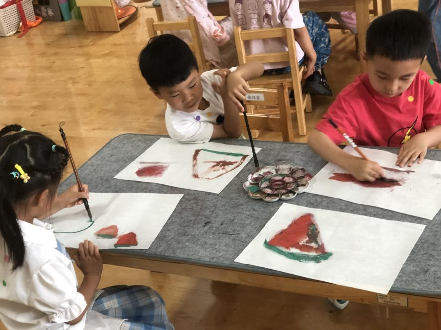 在老师的指导下,小朋友们迫不及待地动手临摹起来,他们认真地上色,拿笔描绘,一笔笔、一画画......渐渐地,原本平淡无奇的宣纸开始变得缤纷多彩。整个活动现场十分温馨,大家都沉浸在创作的喜悦当中,经过一段时间的创作,一幅幅精美的作品跃于眼前,老师一一点评了孩子们的画作,得到赞扬后,让小朋友们信心大增,脸上露出开心的笑容和满满的成就感。