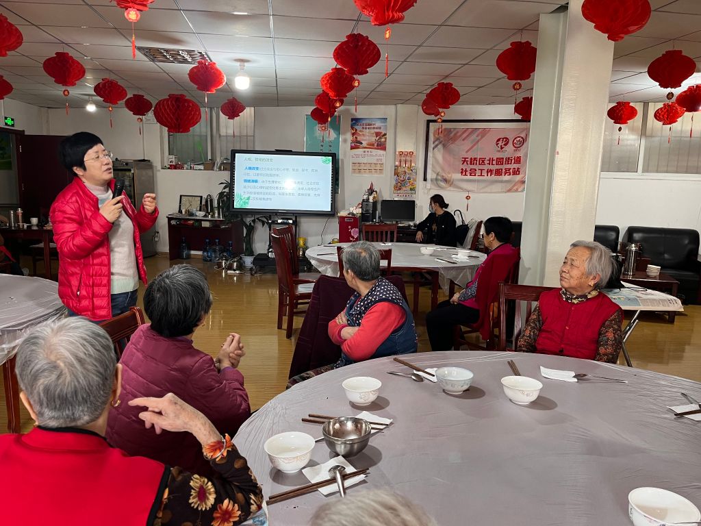 针对“老年人心理健康”问卷调查和走访出现的问题和需求,2023年3月9日,社工站链接济南市第二精神卫生中心,邀请朱君老师在狮子张社区开展“幸福夕阳,耆乐融融”为主题的老年人心理健康讲座,旨在提升老年人心理健康知识,远离心理健康疾病,帮助老年人建立开心、积极向上的心态。