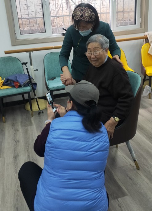 社区志愿者与等待的老年人在一起亲切聊天,了解他们近期的生活和身体情况。志愿者为每一位老人耐心服务,根据每位老人的需求为他们量身打造发型,推拿的老师更是爱心满满,时不时听到屋内阵阵的笑声,大家其乐融融。