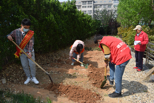 今天,济南大学物理学院的志愿者如期而至。经历了前期的翻土、播种,从今天开始定期给种植物浇水施肥了。在劳动中,可以帮助住养老人舒缓焦虑情绪,增强团队凝聚力,提高人际交往等能力。正如参与小组活动的赵奶奶所说:“在忙碌时,感觉自己没那么焦虑和恍惚了。”植物每日不断生长变化,也可以带给住养老人期待感,引导他们重新发现生命的长处。