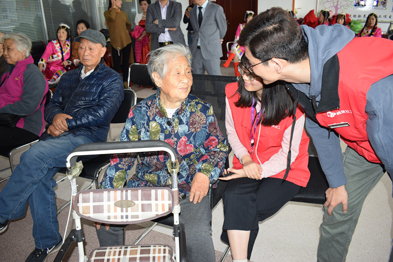 上午9点,社工将住养老人组织在五楼,随后演出准时开始。首先由一支平均年龄为65岁的团队带来开场舞蹈《绽放》,热情火热,也点燃了老人们的热情;两人组合的一段《激情桑巴》舞出了当代老年人的风采;歌曲《赞歌》,高亢嘹亮,慷锵有力,赞美祖国;独唱《我的好妈妈》将演出推向高潮,一曲过后,感染人心,不少老人落泪,回忆起自己母亲;京剧选段《白蛇传》,中国国粹,传统艺术;济南泉水节歌曲《泉水叮咚》,极具泉城特色;最后以一段舞蹈《青春的脚步》结束本次义演活动。