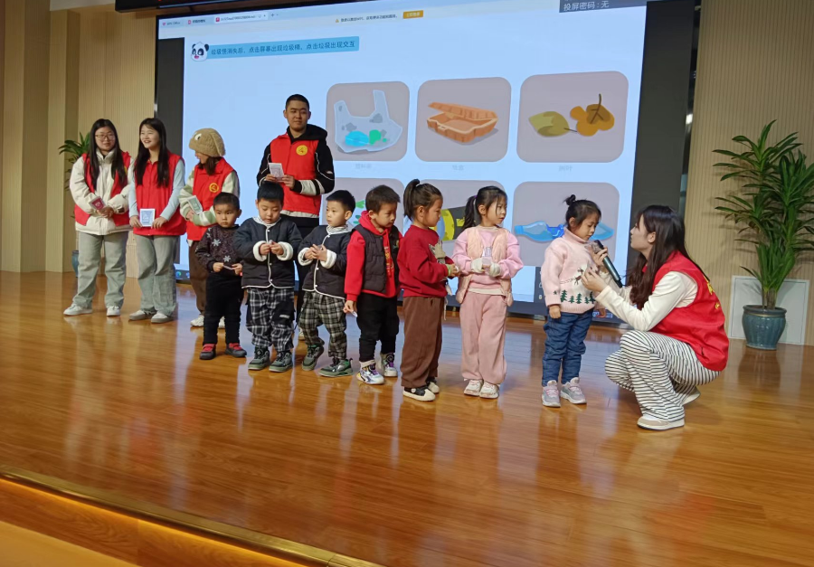志愿者们分工明确,以观看垃圾分类的视频引入主题,然后生动有趣的的讲解垃圾分类的知识。为了让孩子们加深印象记得牢靠,志愿者们设计了两个垃圾分类小游戏。孩子们积极踊跃的参加,在轻松愉快的游戏的中学会了如何垃圾分类。幼儿园领导对这次活动非常满意,致辞感谢。