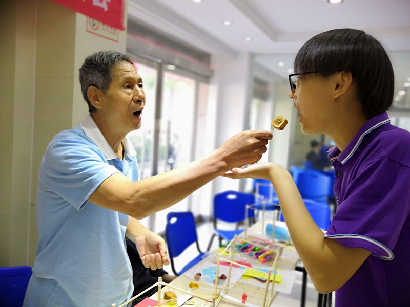 活动伊始,社工邀请社区老艺术家刘刚老师为大家带来精彩的山东快书表演,刘刚老师的表演带动了活动气氛,赢得了观众阵阵掌声。接着,社工为大家介绍了本次活动的意义与流程,让大家对本次中秋欢庆活动有更深层次的理解。第一个环节“学识中秋”中,社工为大家讲解了中秋节由来、历朝各代和各地区欢度中秋的形式。第二个环节“乐猜灯谜”,社工与成员们竞猜趣味灯谜,气氛一度非常热烈。接下来,社工为大家讲解了中秋制作花灯的习俗,并带领大家一起“趣做花灯”。这一过程中,大家配合默契、相互帮助。有的楼院长们将裁剪好的图画加以自己的创意设计、有的楼院长们在灯纸上题诗题字、有的楼院长们写下了祝福与愿望。一个个具有创意与内涵的花灯做好后,大家一起带着花灯和自己的愿望合影。最后,社工为大家端上月饼品尝中秋的味道,一起分享这些美味。大家吃着月饼看着花灯频频绽放笑颜,活动在大家的欢声笑语中圆满结束。