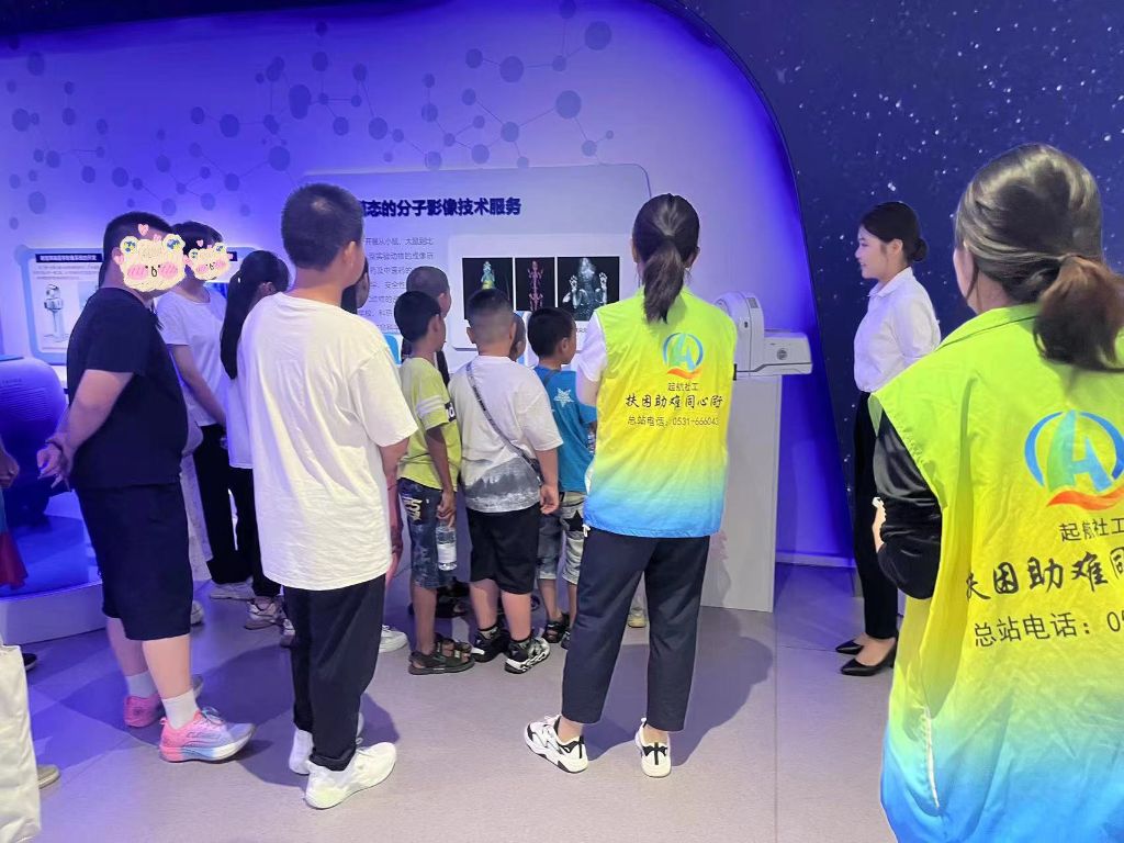 社工与困境儿童进行了结对,孩子们在社工的陪伴下一起走进济南新旧动能转换起步区城市展厅与中科新经济科创园展厅,通过参观建设规划沙盘等,让孩子们了解到起步区的区位优势和未来发展规划,感受家乡发展的勃勃生机。在中科新经济科创园展厅,让孩子们了解到先进动力、核能检测、泛在智能等众多先进技术的应用场景和仪器设备,在孩子们的心中埋下一颗科学的种子。