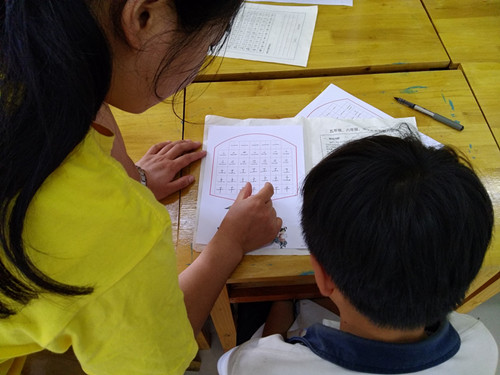 9月14日下午,“守护天使?童伴成长”章丘项目组硬笔书法课第三节课顺利在三涧溪小学美术教师开展。