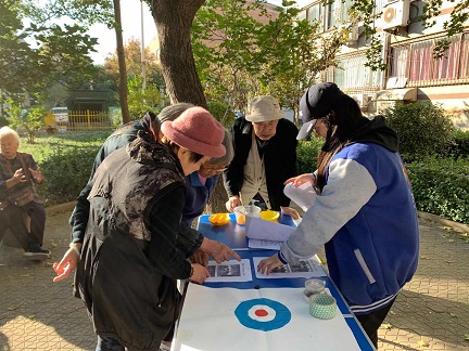 此次运动会社工根据社区老人的实际情况,设计了快乐套圈、报纸马拉松、桌上冰壶等适合老年人参与且趣味性较强的项目,吸引了许多社区居民前来参加。