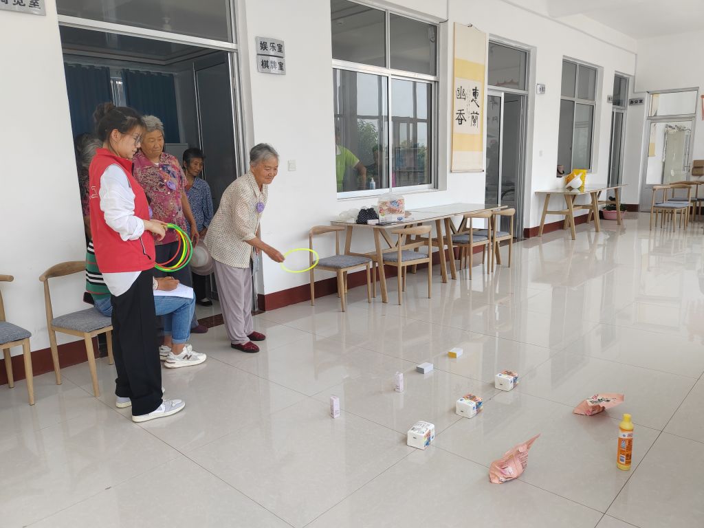 在我国传统文化中,香囊可以驱散虫蚊,聚香凝神,西李家庄幸福院的党员刘奶奶给社工介绍了香囊的历史渊源,在奶奶的指导下,一个个精致的小香囊就做好了。在展示完香囊后,社工为爷爷奶奶们准备了手指操热身活动,“伴随着头头拍拍、肩肩拍拍”的音乐旋律,大家笑得合不拢嘴。在热身活动结束后,就到了大家最期待的“套圈夺宝”环节,社工为大家准备了洗洁精、洗衣粉、抽纸、肥皂等生活用品,套圈结束后,大家都得到了自己心仪的物品。
