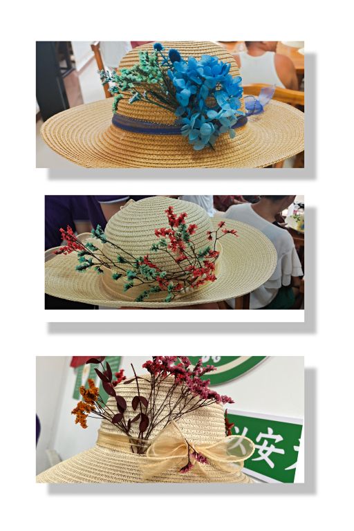 夏季清凉“切水果”来袭,西瓜、草莓、葡萄切切切,服务对象挥动手臂不亦乐乎;一顶草帽,遮阴避暑,蝴蝶结、装饰花、丝带等各种各样的饰物被精心搁置在旁,一顶顶干净整洁的草帽等待着人们将它们装饰一新。服务对象用缎带、干花等装点自己的草帽,各具特色的草帽跃然眼前,大家纷纷试戴,摆出各种姿势拍照留念。最后服务对象拿着社工与村委精心准备的“夏季清凉解暑大礼包”学习防暑小妙招:保持充足的睡眠、科学合理饮食、及时补充水分、做好防晒措施。