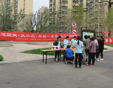 “金秋十月迎国庆,花好月圆庆中秋。”在两节相撞的特别节日里,山泉驻槐荫区民政局兴福项目组社工联合锦绣城居委会和恒大雅苑居委会也为社区居民带来了一次特殊的体验,开展了以“迎国庆,庆中秋·兴福一家亲”为主题的爱心义卖活动。