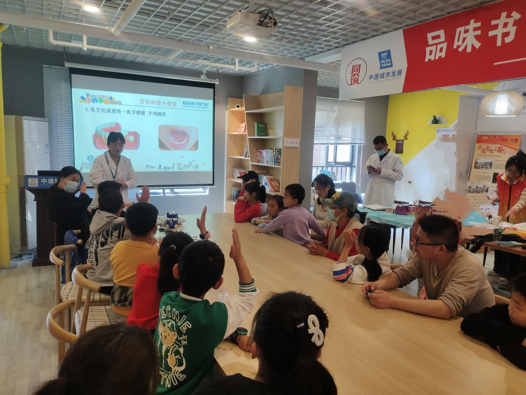 随着科普的结束,小朋友们认真学习牙齿看诊、问诊和龋齿、缺牙等常见牙周口病的诊治方法,开始亲身体验“小小牙医”的一天。