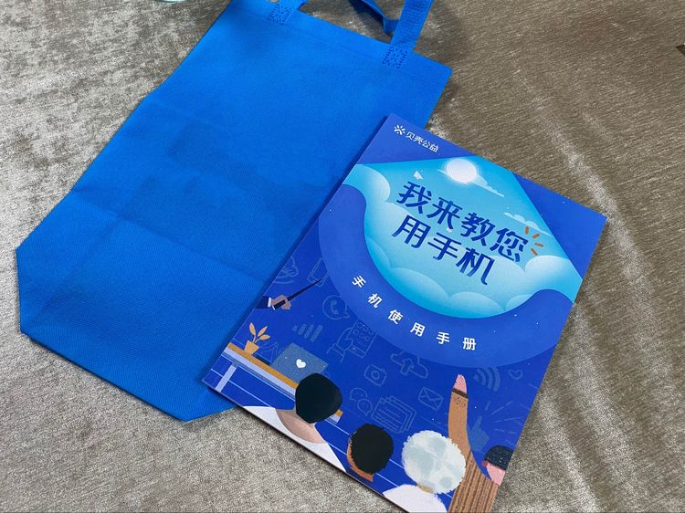 首先,社工站社工为参与智能手机学习小组的老年人发放教材。