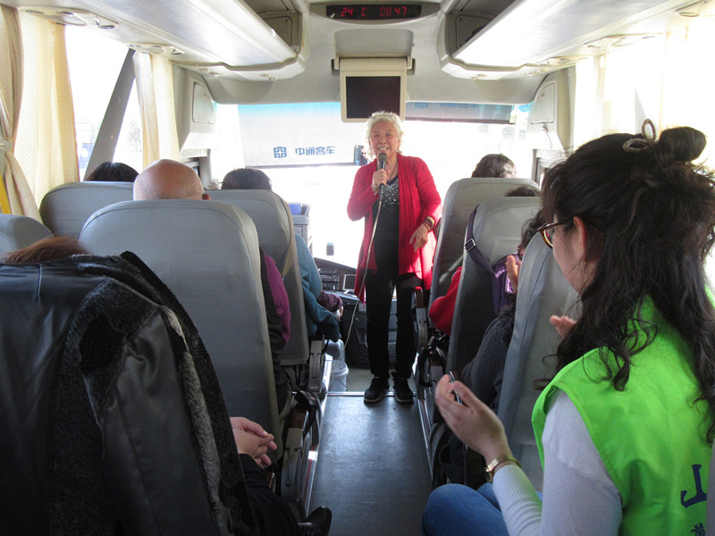 伴着温暖的阳光,大巴车在早上八点钟准时出发了。车上社工强调了出行安全、集合时间、注意事项等。紧接着社区领袖靳阿姨为大家再次宣读了已签订的安全责任书,增强大家的安全意识。随后,在社工和志愿者的带领下,进行了“歌曲接龙”的游戏。头歌以“花”字展开,叔叔阿姨们纷纷展歌喉,旅途中充满了欢声笑语。