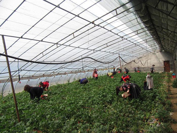 经过一个多小时的车程,来到了户外体验第一站张而村草莓基地。社工邀请农户为大家讲解了草莓生长习性、种植方法、采摘技巧以及储存注意事项等知识。接着以小组为单位进行草莓采摘活动。老人们拿着小箱子,迫不及待地走进草莓大棚,在棚内仔细地寻找最好吃的草莓,小心翼翼地摘下来放在自己的小箱子里,禁不住美味的诱惑时不时放进嘴里一颗。草莓大棚里充满了欢乐。