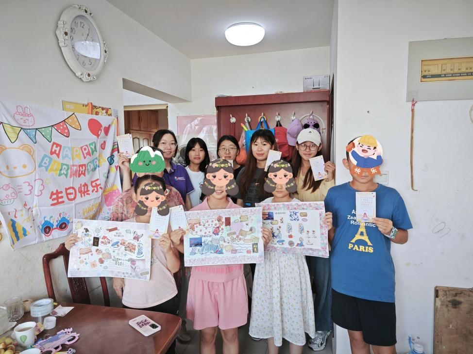 每一次都是孩子成长道路上的小脚印。秋高气爽,正值困境儿童芸芸生日当天,社工带着志愿者们来到了芸芸家中,给芸芸带来了学习用具、教辅资料、课外读物和志愿者制作的手工发饰。不同于别人的家庭背景和长期内向独处让芸芸在学校中朋友很少,活泼热情的小志愿者小玉和小梦游戏中的关注和陪伴,让芸芸展开笑颜,主动和小志愿者姐姐们一起做游戏。在破冰游戏的欢声笑语中,芸芸和志愿者们彼此熟悉,让敲门生日会的气氛逐渐热闹欢快。“祝你生日快乐,祝你生日快乐……”社工带领志愿者们一起为芸芸唱响生日快乐歌,将悦耳的音符编织成温暖的祝福,送给芸芸。在社工和志愿者们的祝福中,芸芸许下生日愿望,吹灭蜡烛后芸芸脸上露出幸福的笑容。芸芸主动为志愿者们分切蛋糕,让社工感受到了芸芸的变化。生日会的最后,芸芸和志愿者们一起制作手账记录敲门生日会的美好时刻。