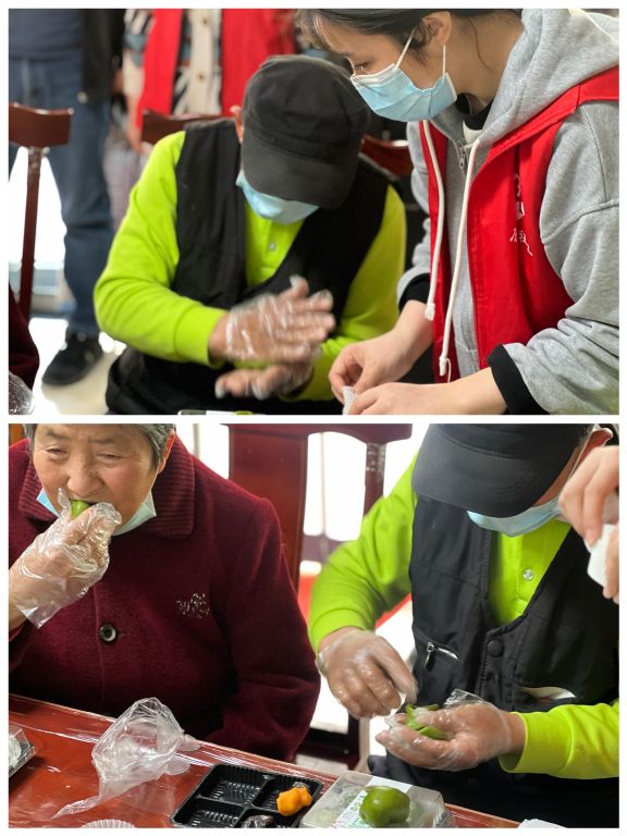 紧接着,社工告知组员,本次活动是小组的最后一次活动,为缓解组员们面临短暂分别的不舍情绪,社工为大家准备了美食制作环节——制作青团。活动中,社工和工作人员先给各位组员分发了预先准备好的青团剂子、馅料、包装盒等材料,详细讲解了制作步骤并进行演示。在大家的共同协作下,一个个散发着浓浓艾草和淡淡糯米香味的青团就做好了,大家品尝着自己亲手制作的美味健康青团,美食带来的幸福感冲淡了离别的淡淡忧愁,笑容洋溢在每个人的脸上。