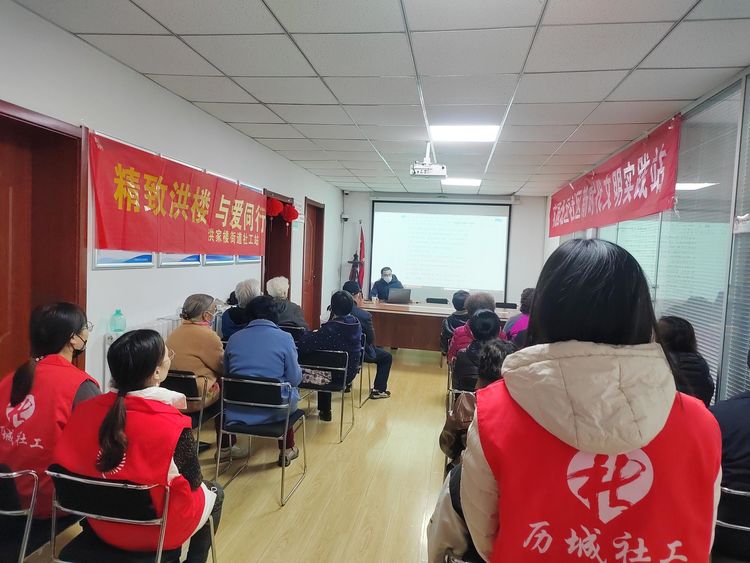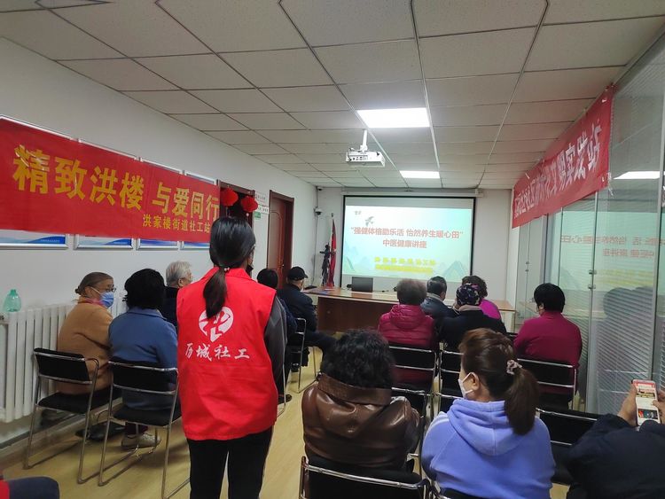 为提高辖区老年人身体素质,普及健康养生知识,传播健康理念,洪家楼社工站联合花园北区、洪家楼街道社区社会组织联合会邀请瑞隆安大药房刘大夫为辖区居民上了一堂春季健康养生知识课,传授春季养生技巧。