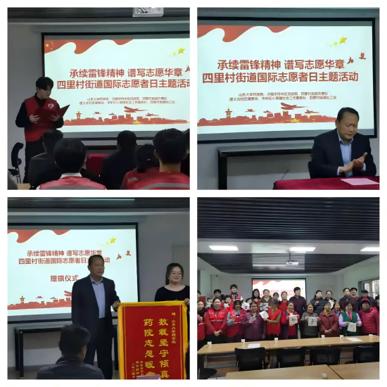 2024年12月5日下午,在济南市市中区民政局、四里村街道办事处的指导支持下,四里村街道社工站联合山东大学药学院、信义庄社区居委会联合举办的“承续雷锋精神·谱写志愿华章”四里村街道国际志愿者日主题活动隆重举行,表扬优秀志愿者、弘扬志愿服务精神、探索和实践“五社联动”机制下“社工+志愿”服务模式的新方向。