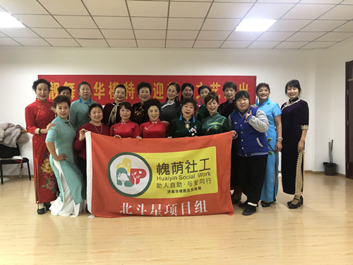 “风雨送春归,飞雪迎春到。各位姐妹各位朋友们大家下午好……”伴随着主持人的热情开场,一场别开生面的迎新年文艺汇演在槐荫民政北斗星项目组拉开序幕。本次“靓舞年华”模特队迎新年文艺汇演由队伍自己组织策划,从确定主持人到节目征集再到正式演出,全部由队伍成员自己商讨决定,社工在活动过程中以引导协助为主。