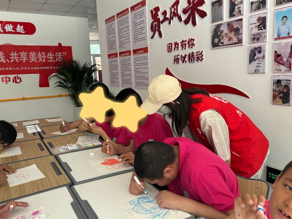 活动现场,社工和工作人员还准备了丰富的绘画材料和工具,为孩子们提供了一个充满创意和乐趣的绘画空间。首先,向孩子们介绍了绘画的基本技巧和注意事项,并鼓励他们大胆尝试,用色彩表达自己的情感和想法。随后,孩子们纷纷拿起画笔,投入到创作之中。他们在纸上涂抹出五彩斑斓的画面,有的画出了美丽的风景,有的画出了可爱的动物,还有的画出了自己心中的梦想。