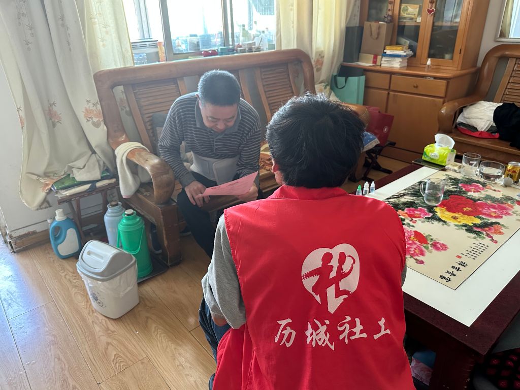 此次走访是为了宣讲最新下发的相关补助政策及申请条件。在与残疾人张老师及家人的沟通中,社工了解到张老师的家庭情况,生活自理能力以及家庭的经济情况和困难。社工详细地做好记录并帮助他们解答了关于残疾人补助政策的相关问题,张老师感激地说:“真是太好了,谢谢你们社工帮我解决困难,让我能及时了解政策”。