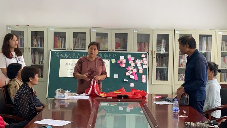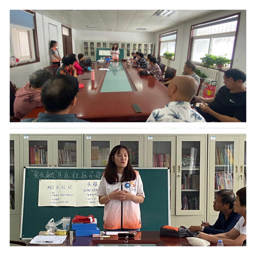 由于队伍的不断壮大,团队成员也需深度认识,在社工的引导下,“爱在身边”县东社区志愿服务队17名成员互相介绍过程中,社工站及团队成员对彼此的住址、兴趣爱好、在组织参加的服务、感受等有了一个深度的了解,为后续进行组织架构梳理及服务梳理奠定基础。让人更加动容的是,现场两位老师谈到自己从受助者到助人者身份的转变。一位老师是因为楼道的灯急需修理,在问题得到解决后,了解到队伍的服务内容后,也希望能做一些力所能及的事情,为团队、为居民贡献自己的力量,就加入了队伍。一位老师吃饭时被食物卡住,身体极度不适,郝振荣老师等团队成员协助其助医、挂号排队等,及时的爱心和关注,让这位老师更加坚定要跟随队伍,一起将爱传递。“爱在身边”县东社区志愿服务队的每位老师都有着极其强烈的志愿服务的热情和爱心,通过口碑相传,团队的凝聚力、向心力、志愿服务的特质也吸引了源源不断的社区志愿者加入进来。