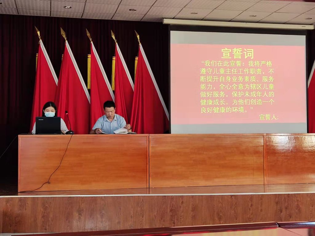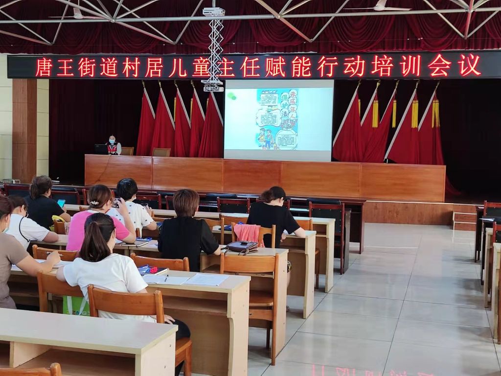 7月4日,唐王街道民政办召开辖区儿童主任赋能行动启动会议。本次会议为唐王街道40位儿童主任颁发“儿童主任胸牌”,带领大家集中学习《儿童主任赋能行动实施方案》,街道社工苏晓为大家以PPT形式讲解《儿童主任职责清单》并对相关业务知识进行培训。民政办王主任点明会议要求,关爱和保护未成年人工作要落实好“三亮三学三做”以“三亮”增强儿童主任使命感和荣誉感,以“三学”提升儿童主任政策水平和业务能力,以“三做”确保困境儿童监护不缺位、关爱不缺失,着力发现及解决留守儿童、困境儿童生活学习一系列问题,打通关爱服务未成年人“最后一公里”。