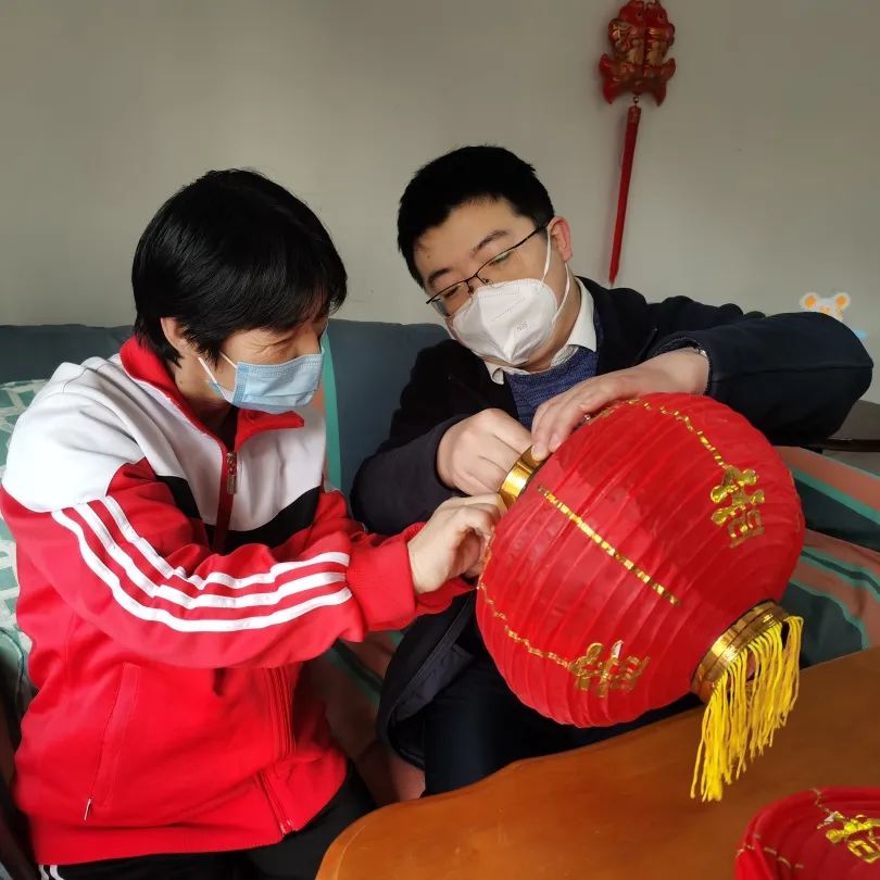 自古以来,各色花灯是元宵佳节不可或缺的喜庆元素。它寄托着每个人追求团圆和美满的愿望,而元宵点灯,更是承载着人们对美好生活的向往与追求。社工孙浩手把手教着服务对象李阿姨和大宝如何制作灯笼,随着灯笼一点一点制作完成,李阿姨和大宝的脸上也露出满意幸福的笑容。
