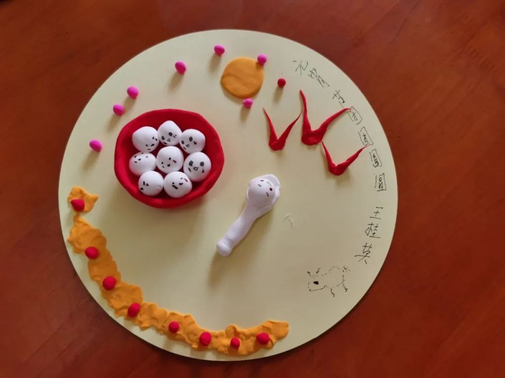 社工分步骤将制作流程教授给服务对象,每一个参与其中的服务对象都认真的听着社工的讲解,看着社工的示范。不论是一双双巧手还是略显笨拙和颤抖的手,不论是耳聪目明的服务对象还是耳背到几乎什么也听不见的耄耋老人,所有人的脸上都洋溢着微笑和兴奋,所有人都很高兴地将一快快黏土橡皮泥团成所需要制作的原材料。大家随着社工的讲解,又将一个一个原材料组合起来,制作出一碗碗形象逼真、软萌可爱的小汤圆。写祝福、画玉兔、描月亮……妙笔勾勒出一幅幅饱含祝福的作品。
