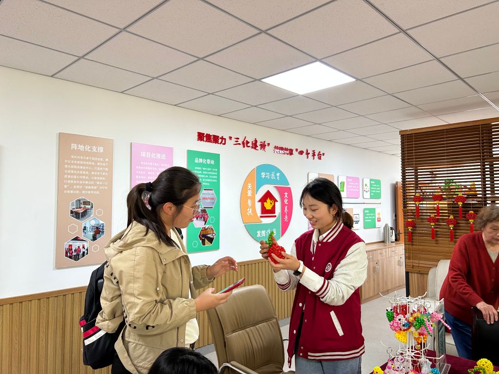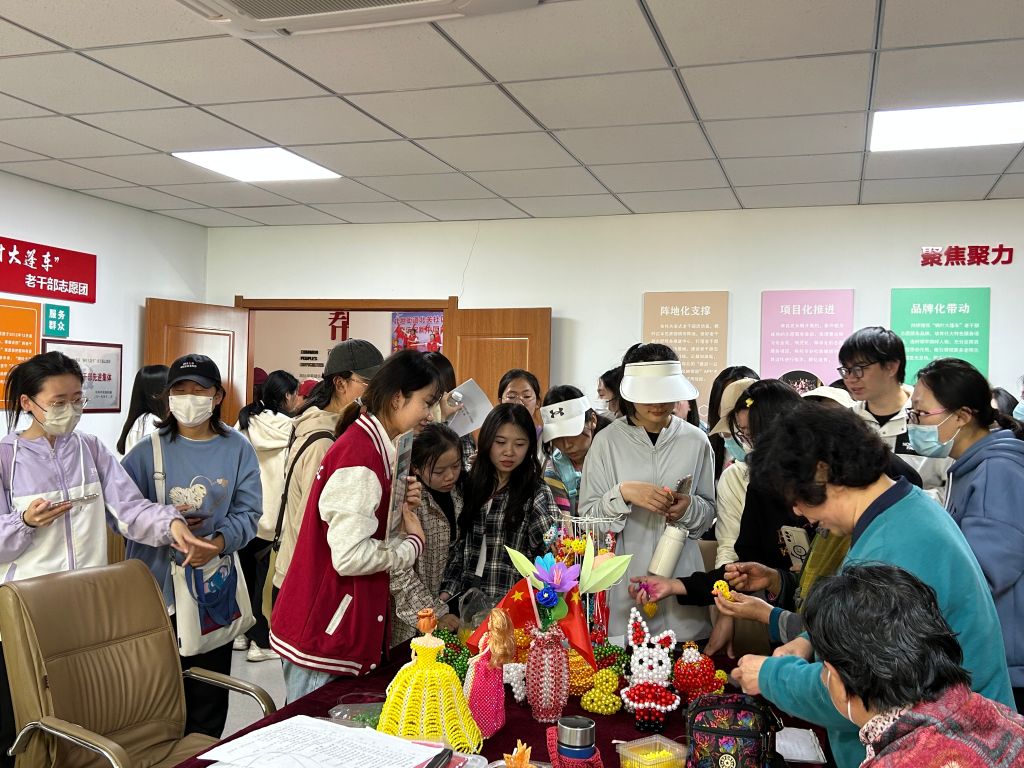 活动开始后,很多义卖品都得到了前来参观的山青院众师生的欢迎,社工和志愿者们为他们进行产品介绍,认真推销产品,部分志愿者们还现场进行串珠展示,给感兴趣的同学进行解答。北关“春萌”手工串珠队都是社区里已经退休的老年志愿者,她们定期组织串珠活动,这次活动所有的义卖品都出自这些老年志愿者之手,同时这些义卖活动所得的钱物也将用以慰问社区里的困难群体。参加义卖的师生再对北关“春萌”手工串珠队的慈善志愿服务有所了解之后,对串珠队的志愿者们满是赞扬。