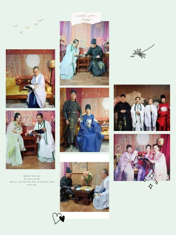 各位参加活动的组织成员非常积极,按时到达活动场地,随后挑选了心怡的古装更换。活动中,各位参加活动的老人配合社工在不同的场景中摆出不同的姿势,进行拍摄,杨老师和彭老师还现场吟诵了宋代李愚的千古第一奇诗《夫忆妻》,充分烘托了七夕节日氛围。